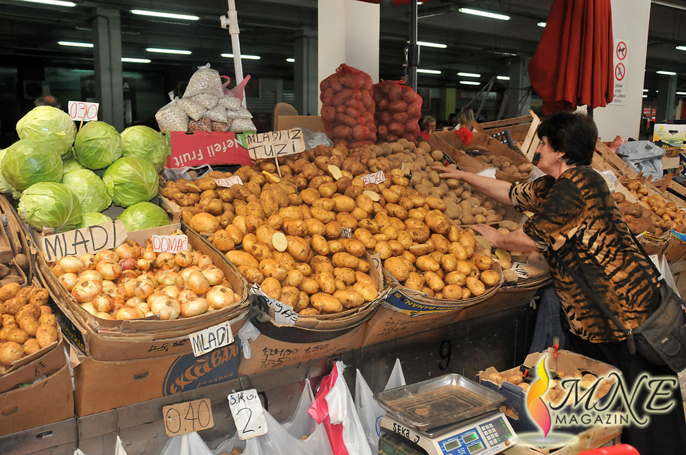 -Ovo što vidite na mom štandu su domaći proizvodi. Krompir je iz Tuzi i cijenim ga 0,50 centi, a tri kilograma tikvica cijenim euro, kao i luk. Uprkos tome, samo sjedim na ovoj stolici, jer se niko ne interesuje da želi da kupi nešto – kazala je prodavačica Ana.