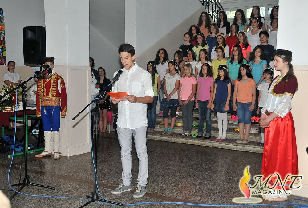 Na ulazu u školu goste su dočekivali učenik i učenica u crnogorskoj narodnoj nošnji. Priredbu je otvorio hor koji je izveo himnu ,,Oj, svjetla majska zoro”. Kosta Mićanović u svom ,,Pismu školi” zahvalio je na svemu što mu je ona dala. Divne recitacije podarili su Mina Peruničić (,,Običnim rečima rečeno”), Petar Vlahović (,,Budimo svjetionici”) i Anđela Marunović (,,Ljudi sjenke”). Veliki i mali hor obradovali su posjetioce prelijepim izvođenjem numera ,,Gdje je onaj cvjetak žuti”, ,,Brojalica” i ,,Nađi me”. Ritmičke sekcije prvog, drugog i trećeg razreda, moderni ples sedmog razreda i balerina Teodora Jelušić bili su divni u svojim plesovima, što se moglo vidjeti po reakcijama publike. Folklorno izvođenje učenika drugog razreda i recital Ane Vujošević (pjesma ,,Flekica”) dobili su najviše aplauza.