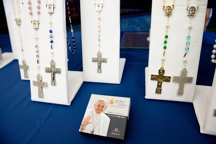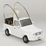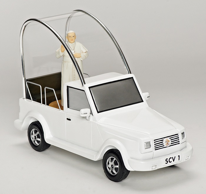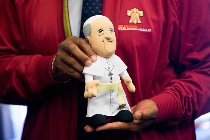 Papa dolazi u Ameriku, pa su se dovitljivi američki trgovci odmah snašli i počeli da izrađuju suvenire u tu čast. Ima tu svega – figurica Pape kako maše, lutkica, bejzbol loptica, sportskih topova, replika krsta, zavjesa u kupatilu sa natpisom ,,hope” (nada)….