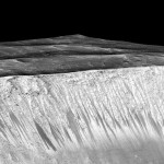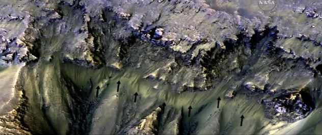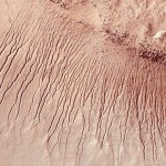 Voda za sobom ostavlja duge i tamne mrlje koje mogu ići i nekoliko stotina metara nizbrdo na površini Marsa tokom ljeta, prije nego što se pred jesen osuše kada površinska temperatura opadne.