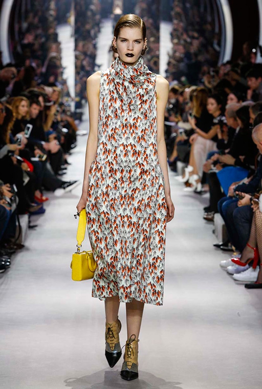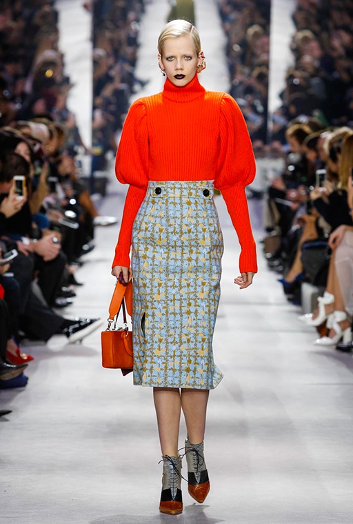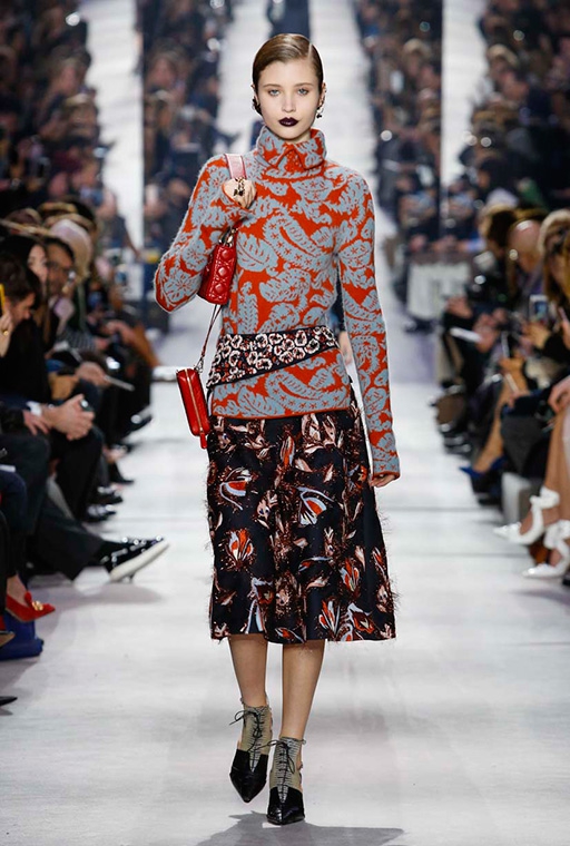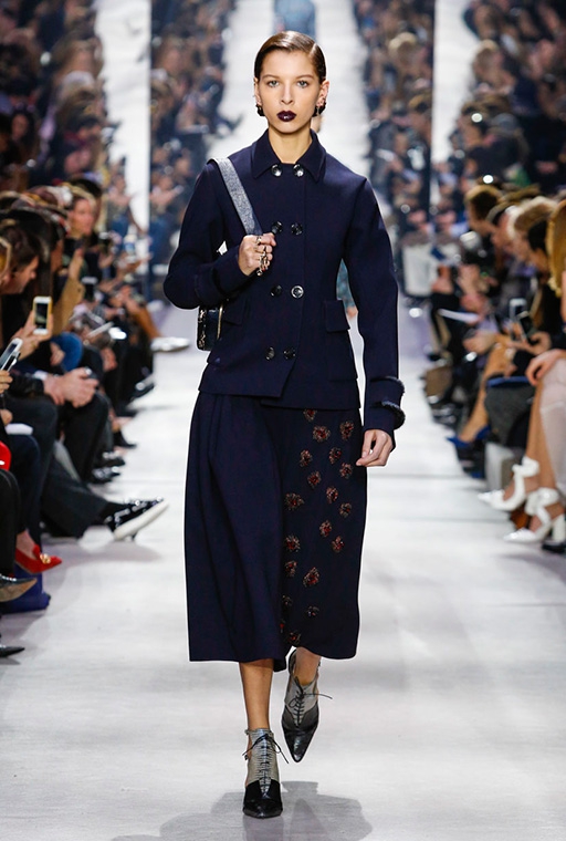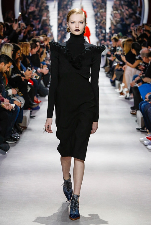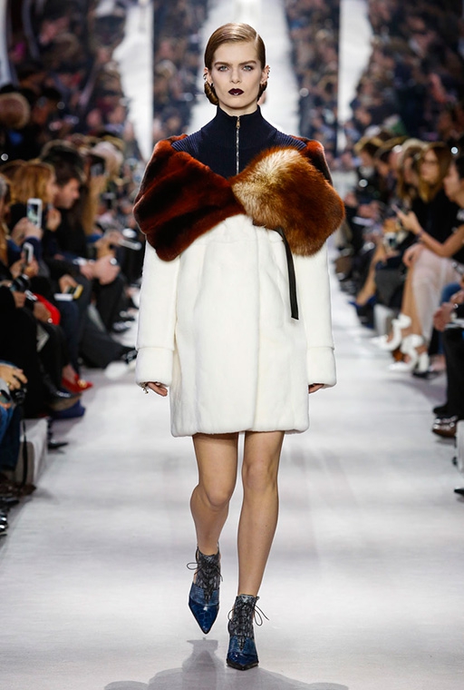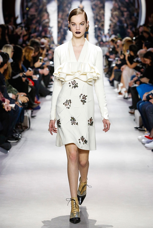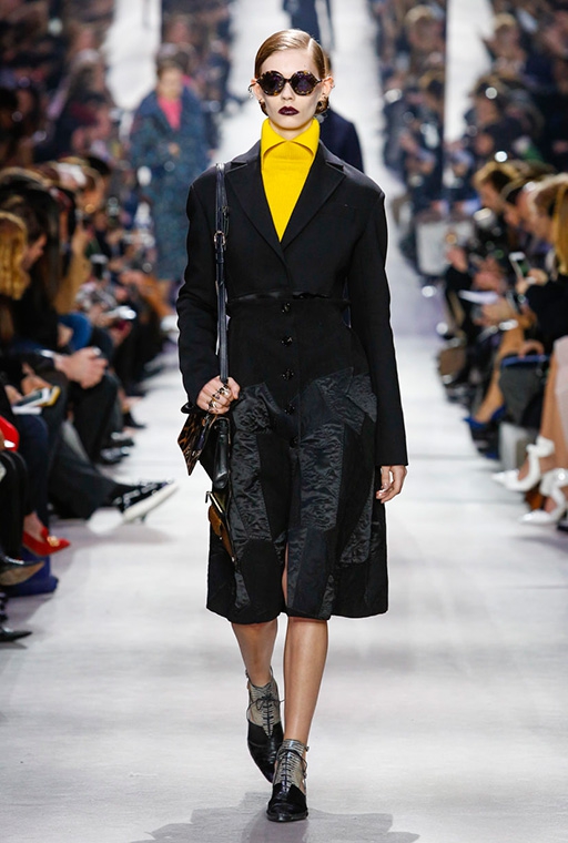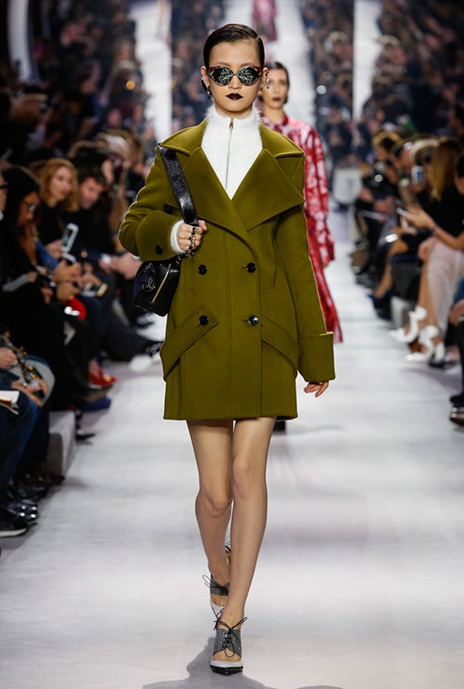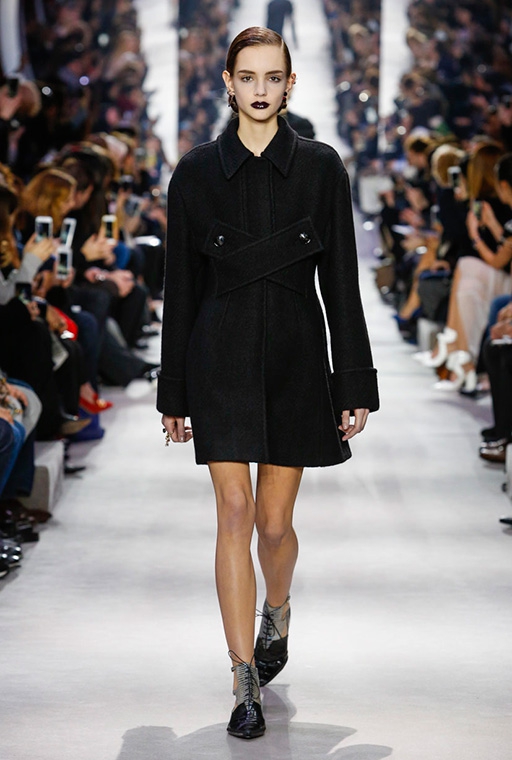 Izgleda da su u novoj zimskoj kolekciji kaputi bili najjači adut modne kuće Dior. Minimalistički, ali ženstveni krojevi provlačili su se kroz cijelu kolekciju, a posebno su bili zanimljivi modeli nalik na kratke haljine A kroja bez kragne s dubokim izrezom koji decentno otkrivaju ramena. Romantične asimetrične kapute krase volani u donjem dijelu, a kombinovani s cipelama na špic u nekoliko boja čine dobar kontrast u ovoj modnoj igri. Prozračne lagane suknje ukrašene su svjetlucavim uzorcima i uz kratke jakne s peplum detaljima djeluju vrlo damski.