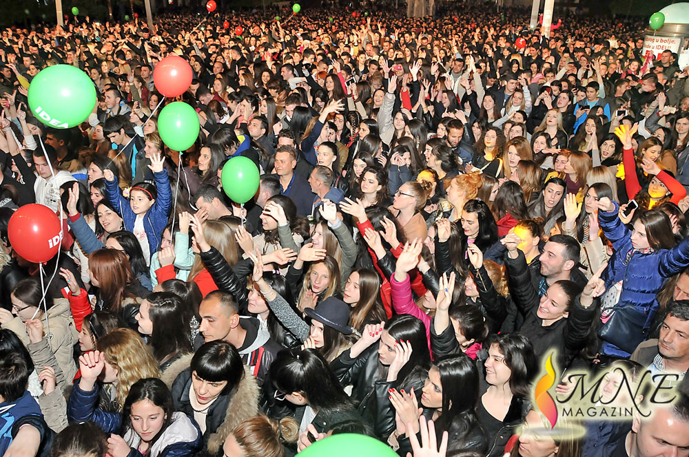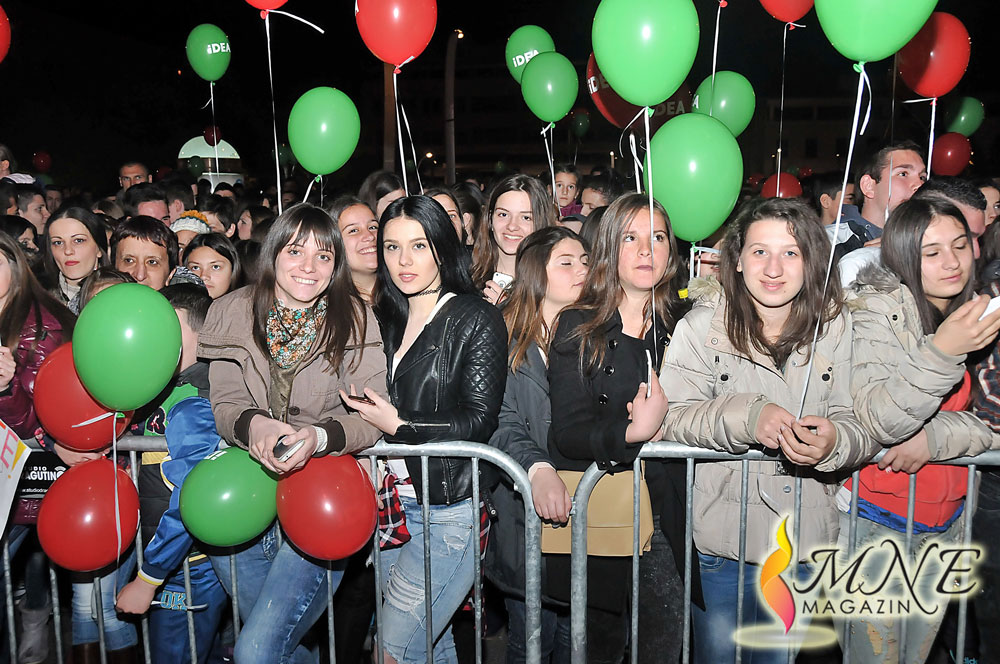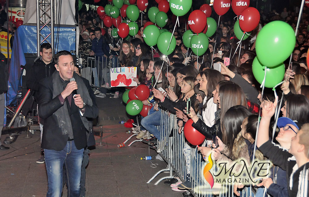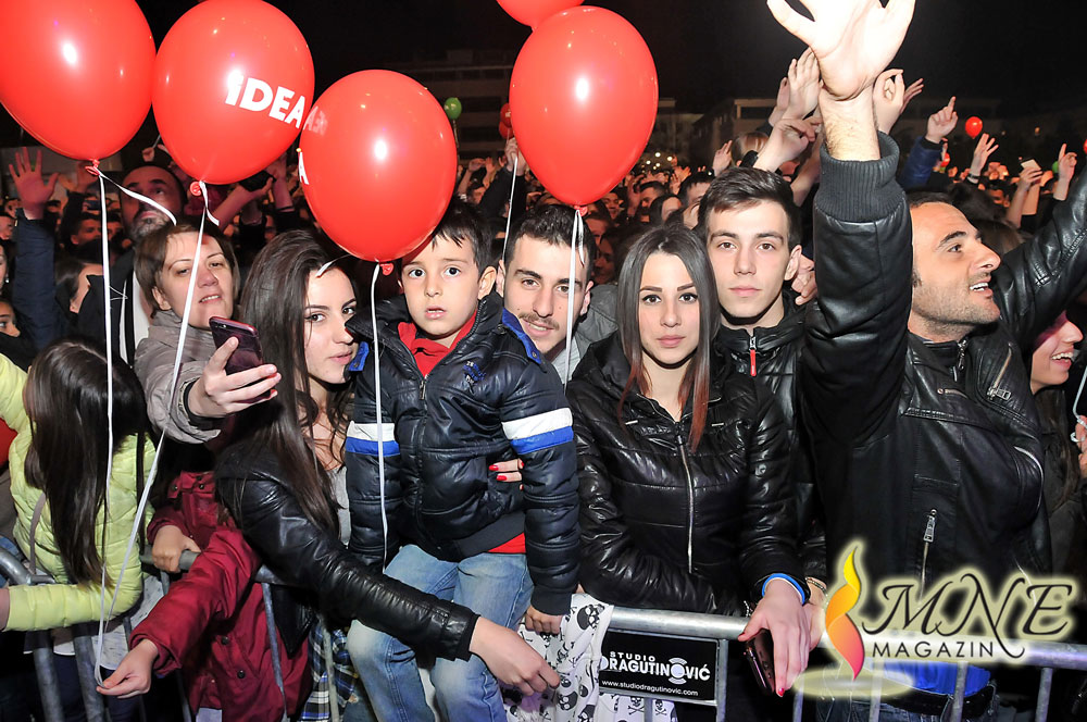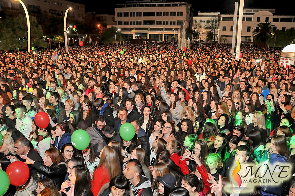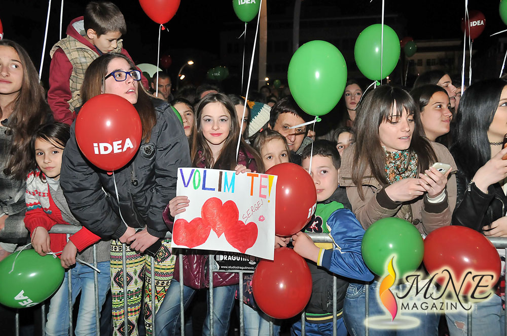 Publika u Podgorici pjevala je sinoć sa Sergejem Ćetkovićem od prvog do zadnjeg takta svaku numeru. Trg Republike, koji je bio mali da primi sve zainteresovane, te su poštovaoci Sergejeve muzike slušali koncert sa terasa i krovova obližnjih zgrada, bio je prekriven crvenim i zelenim balonima. Na jednom od njih pisalo je ,,Sergej, voli te Olja”, baš kao i ,,Volim te” na jednom od papirnih transparenata u prvom redu.