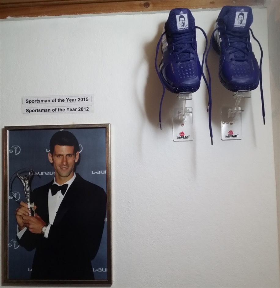 Tik do Đokovićeve fotografije iznad koje su ispisane godine u kojima je proglašavan najboljim sportistom planete zakačene su adidas patike sa njegovim likom u kojima najbolji teniser današnjice trenutno igra. Vukić kaže da nema namjeru da ih oblači iako je, za svaki slučaj, kupio broj koji on nosi…