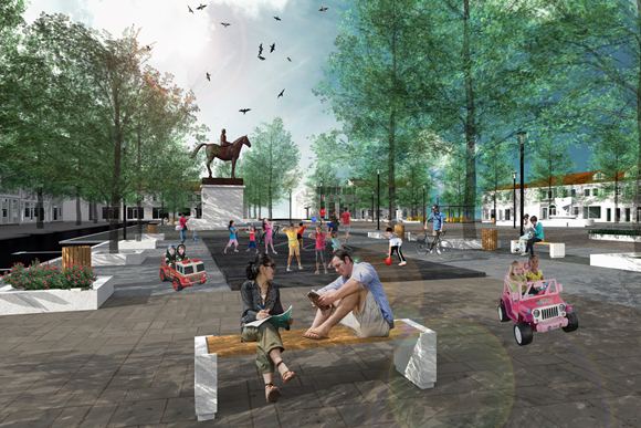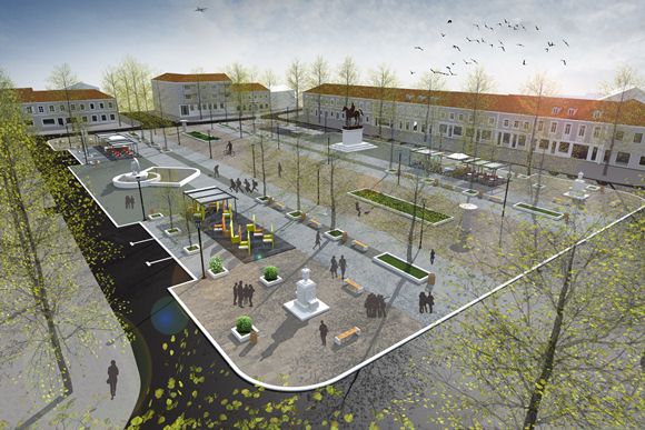 – Na ovaj način se formira centralni prostor trga, kojim se naglašava pozicija spomeničke skulpture i fontane i stvara slobodna površina, ili opisno rečeno „trg u trgu“. U „zonama“ koje su oivičene česmama, skulpturom i fontanom su planirani sadržaji otvorenih terasa, sezonskog karaktera kao i pratećih sadržaja. Ideja je da se u tim zonama održavaju svi prateći sadržaji koji su karakteristični za Trg, tj. promocije, štandovi za prodaju knjiga, dječji rekviziti, autići i sl., a da se u samom centru Trga, ispred spomenika i fontane omogući, u tehničkom smislu, montaža bine i održavanje koncerata i sličnih manifestacija masovnog okupljanja – kaže Adžić.