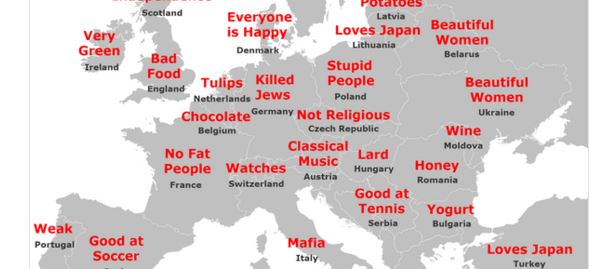 On je rezultate istraživanja postavio na Tviter u vidu mape na kojoj su naznačeni stereotipi za određene zemlje.