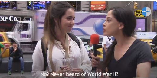 A ono što čujete nije nimalo pohvalno za Amerikance. Naime, oni nisu znali niti ko je Hitler, a ono što još više zapanjuje jeste da nikada nisu čuli za Drugi svjetski rat. Novinarka je džabe u čudu pitala: ,,Nikad niste čuli za Drugi svjetski rat?! Nikad niste čuli za Hitlera?!”, odgovor je bio ,,Ne.”