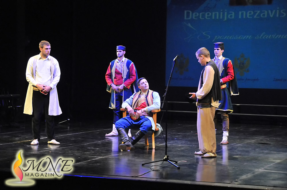 Ministarstvo prosvjete, u okviru obilježavanja desetogodišnjice od obnove nezavisnosti pod sloganom ,,Decenija nezavisnosti – s ponosom slavimo”, organizovalo je danas u Crnogorskom narodnom pozorištu svečanost na kojoj su uručene nagrade učenicima osnovnih škola, autorima najboljih likovnih i literarnih radova na temu ,,Crna Gora – neugasiva baklja slobode” i srednjoškolcima autorima najboljih likovnih i literarnih radova na temu ,,Ponosni na prošlost – gledamo u budućnost”.