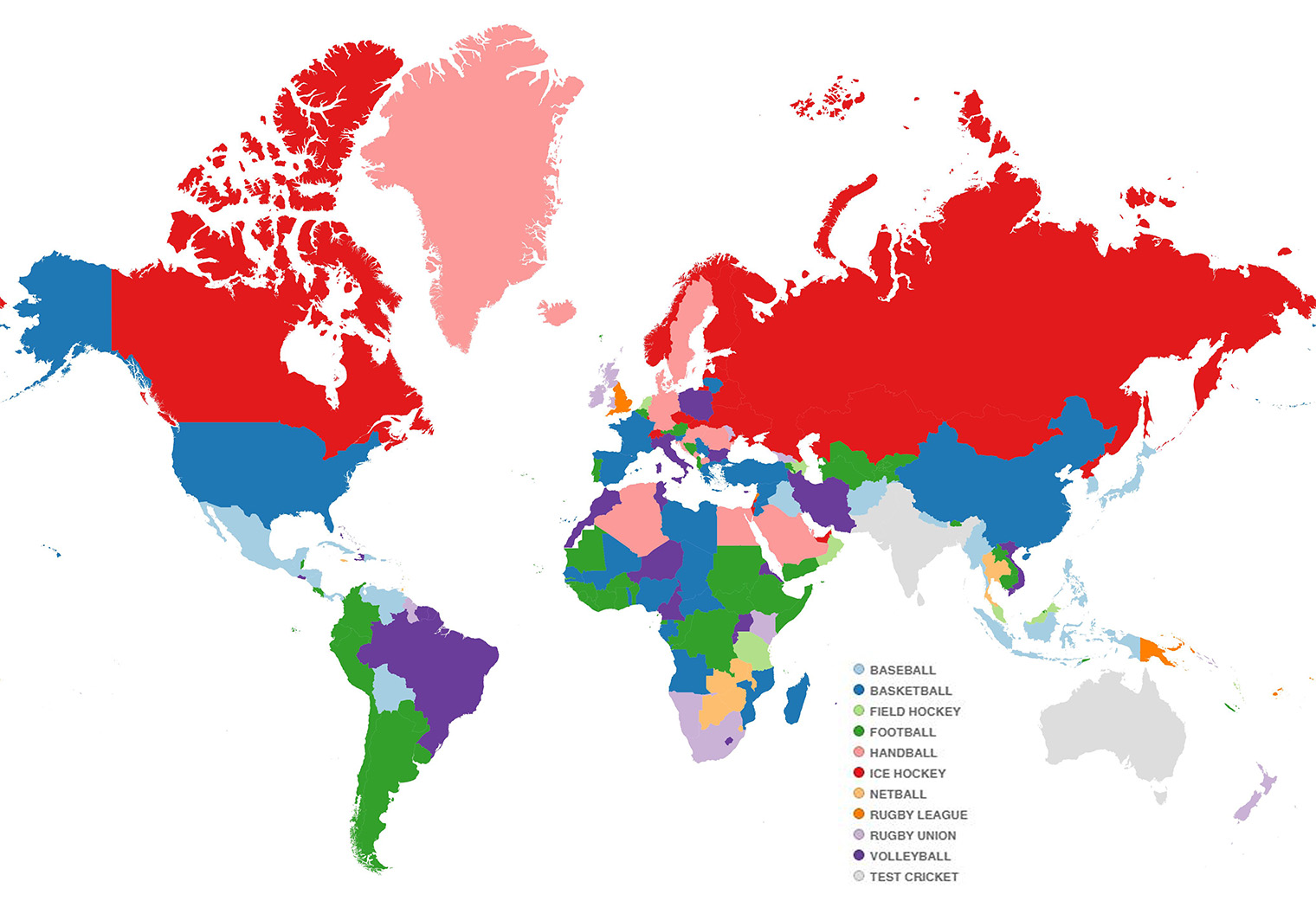 Oni su došli do tih podataka praveći mapu svijeta u sportu u kojem je svaka država najbolja. Rađena je na osnovu svjetskih rang-listi u timskim sportovima: fudbalu, ragbiju, kriketu, odbojci, bejzbolu, hokeju, rukometu….