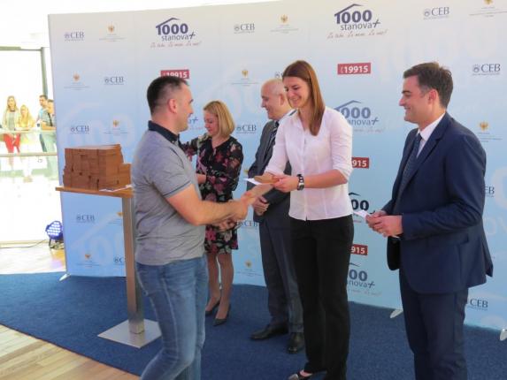 Sekretar Ministarstva održivog razvoja i turizma Zoran Tomić, predsjednik Projektnog odbora Marko Čanović, potpredsjednica Projektnog odbora Radmila Lainović i proslavljena rukometašica Katarina Bulatović danas su uručili 166 vaučera mladim bračnim parovima, zaposlenim u javnoj upravi i ostalima u projektu 1000+ .