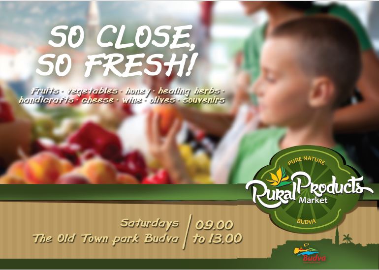 Kao što je ranije najavljano, projekat ,,Pijaca ruralnih proizvoda”, osmišljen i podržan od strane Turističke organizacije opštine Budva, podrazumijevaće izlaganje i prodaju organskih i domaćih poljoprivrednih proizvoda sa crnogorskih područja i autentičnih rukotvorina.