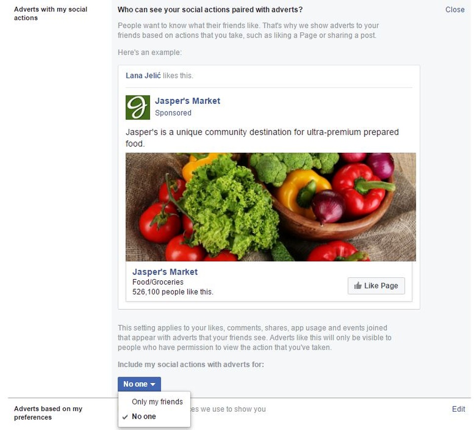 ,,Facebook” je oduvijek prikazivao ciljane oglase svojim korisnicima. Prema aktivnosti korisnika na ovoj društvenoj mreži, profila koje posjećuje i objava koje ,,lajkuje”, ,,Facebook” je plasirao određene oglase korisnicima.
