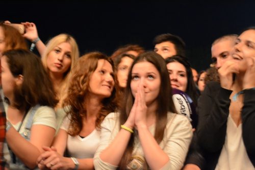 Mančesterski dvojac Teo Hačkraft i Adam Anderson na scenu su se popeli u ponoć, praćeni ovacijama i vriskom publike koja je ispunila Jaz. A nju su većinom činile mlade dame čija su srca te večeri kucala za ,,Hurts” i koje su pjevale sve numere horski, od prve do posljednje riječi. Hačkraft i Anderson nisu skrivali oduševljenje.