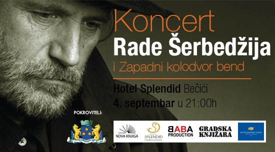 Rade Šerbedžija i ,,Zapadni kolodvor bend” nastupiće u hotelu ,,Splendid” u Bečićima 4. septembra sa početkom u 21h. Koncert će biti održan pod pokroviteljstvom opštine Budva, u organizaciji Izdavačke kuće ,,Nova knjiga”.