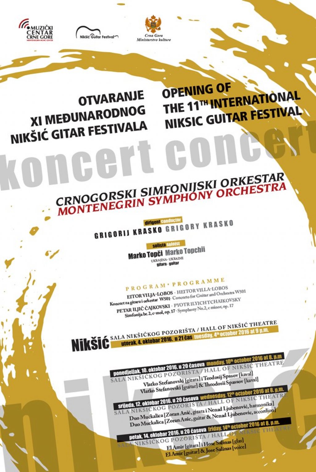 Koncertom Crnogorskog simfonijskog orkestra i gitariste Marka Topčija 4. oktobra u Nikšićkom pozorištu od 21 čas počeće ovogodišnji XI međunarodni Nikšić Guitar Fest.