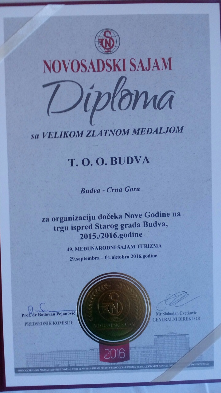 Ovom prilikom, osvojila je brojna priznanja i nagrade u različitim kategorijama: za aktivnosti TO Budve, za organizaciju manifestacija, kao i ostalih aktivnosti opštinske turističke organizacije, za organizaciju manifestacije ,,Brodet fest 2016”, za doček Nove 2016. godine na trgu ispred Starog grada.