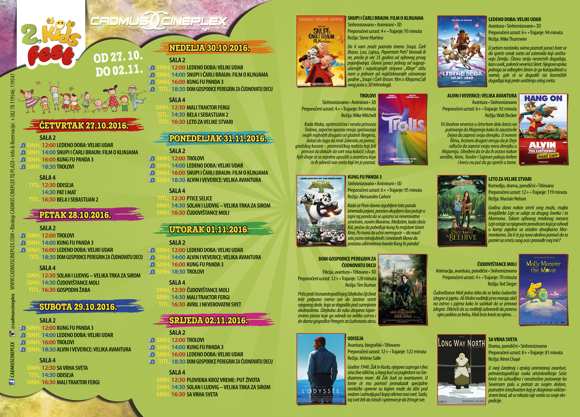Najmlađi ljubitelji filma biće u prilici da gledaju filmske premijere animiranih, igranih i dokumentarnih filmova u okviru dječijeg filmskog festivala – KIDS FEST, koji se održava od 27. oktobra do 2. novembra u budvanskom bioskopu Cadmus Cineplex!