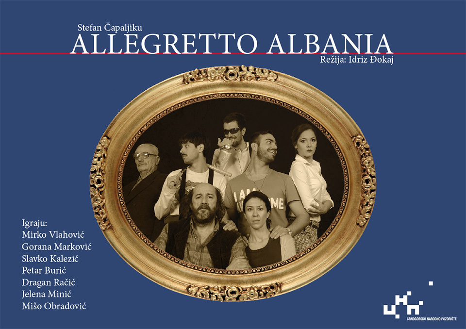 U četvrtak 03. novembra, na Sceni Studio Crnogorskog narodnog pozorišta u 20.30 sati, biće izvedena predstava „Allegretto Albania“ Stefana Čapaljikua, u režiji Idriza Đokaja. Autorsku ekipu čine: Dragana Tripković, dramaturg, Balša Poček, asistent dramaturgije, Anja Jovanović, video, Lina Leković, Ivana Murišić i Vladan Bošković, saradnici na scenskom dizajnu. U predstavi igraju: Mirko Vlahović, Gorana Marković, Slavko Kalezić, Petar Burić, Dragan Račić, Jelena Minić i Mišo Obradović.