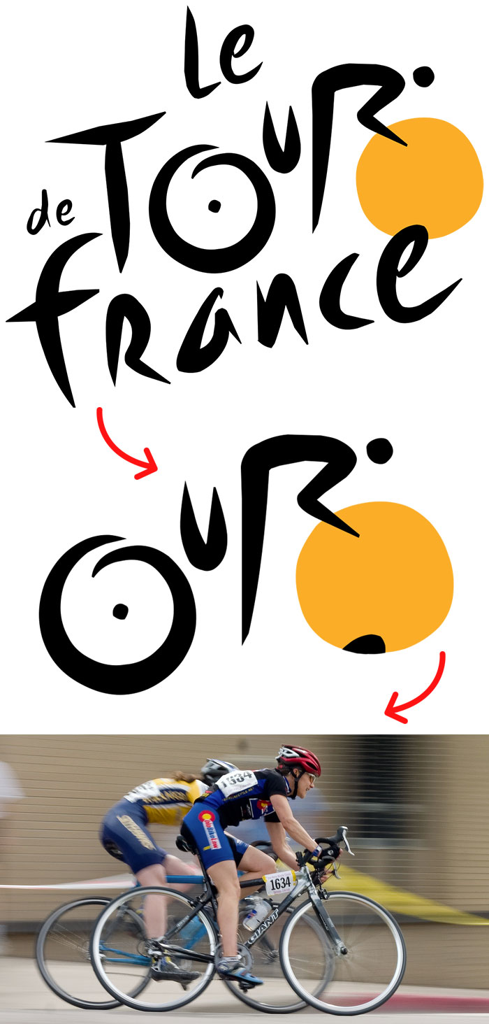 Pogledajte pažljivo oblike u dijelu ,,our” u logu čuvenog Le Tour de France-a. Tu je kaciga, krug i biciklista.