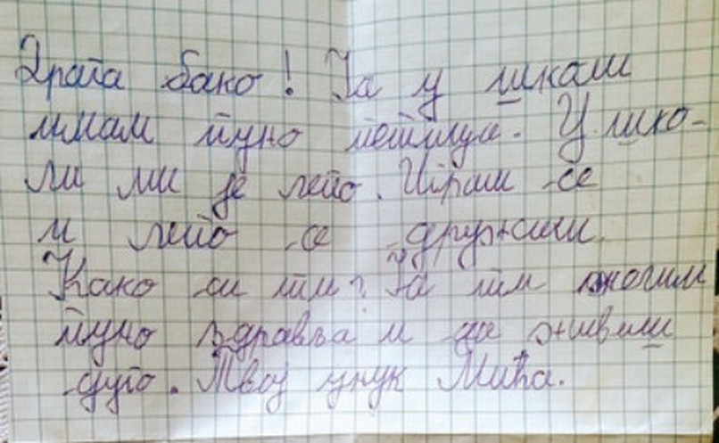 Prije nekoliko dana brat mi je poslao fotografiju pisma koje sam napisao baki prije 22 godine. Ona sve čuva, pa i moje žvrljotine iz osnovne škole. Pošto se nismo odavno vidjeli, na ovaj način je željela da mi poruči koliko joj nedostajem. Koliko je ona bitna u mom životu ovaj tekst ne može da prenese jer da nije bilo nje, ja bih sigurno bio potpuno drugačiji.