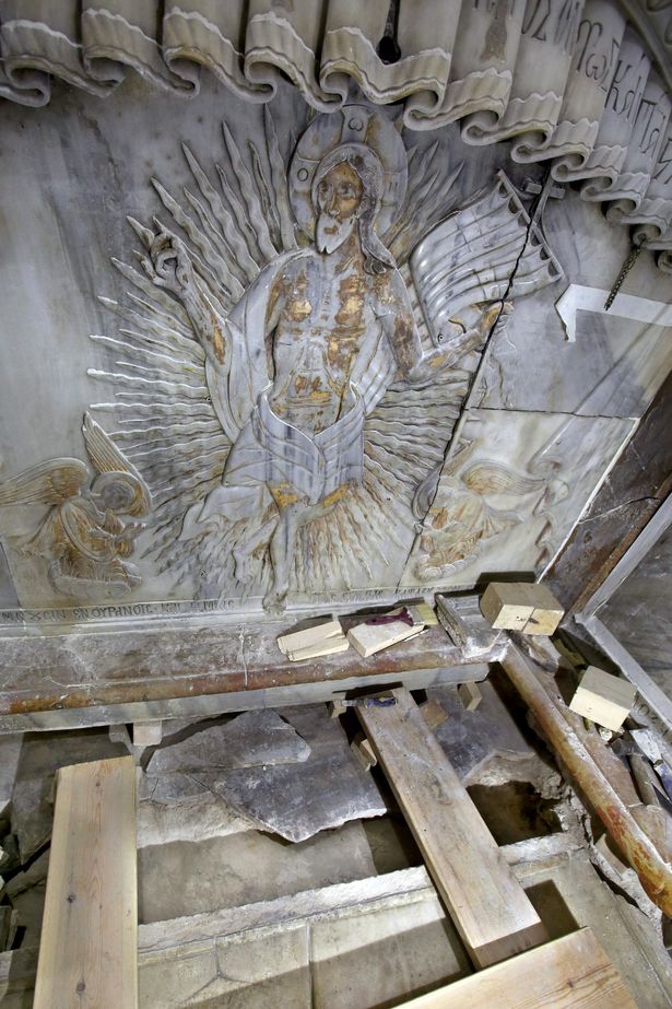 Pošto su, prvi put poslije 500 godina, podigli mermerni poklopac, naučnici su otkrili udubljenje od krečnjačkog kamena u koje je, kako se vjeruje, bilo položeno Hristovo tijelo, navodi ,,Miror”. Osim toga, otkrivena je i druga ploča od sivog mermera o kojoj naučnici nisu ništa znali, sa ugraviranim krstom koji su, pretpostavljaju oni, urezali krstaši u 12. vijeku.
