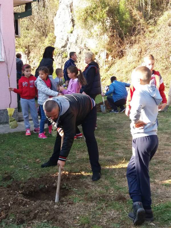 Učenici OŠ „Dragiša Ivanović“, odjeljenja u Doljanima, i njihovi roditelja zasadili su u prošlu subotu u školskom dvorištu deset sadnica voćki: višanja, trešanja, jabuka i krušaka.