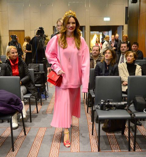 U kraljevskom maniru Severina se pojavila u Skoplju na promociji mineralne vode makedonskog proizvođača Pelisterka za koji nastupa kao novo zaštitno lice. Na medijskoj konferenciji Severina se ponovno potrudila da svi pričaju o njoj zahvaljujući stajlingu od trendovskih ružičastih krpica i skupocjenih dodataka. S detaljem zlatne krune na glavi lijepa pjevačica sve je počastila pogledom na kombinaciju predimenzioniranog duksa i plisirane suknje koju je upotpunila skupocjenom torbicom i cipelama.