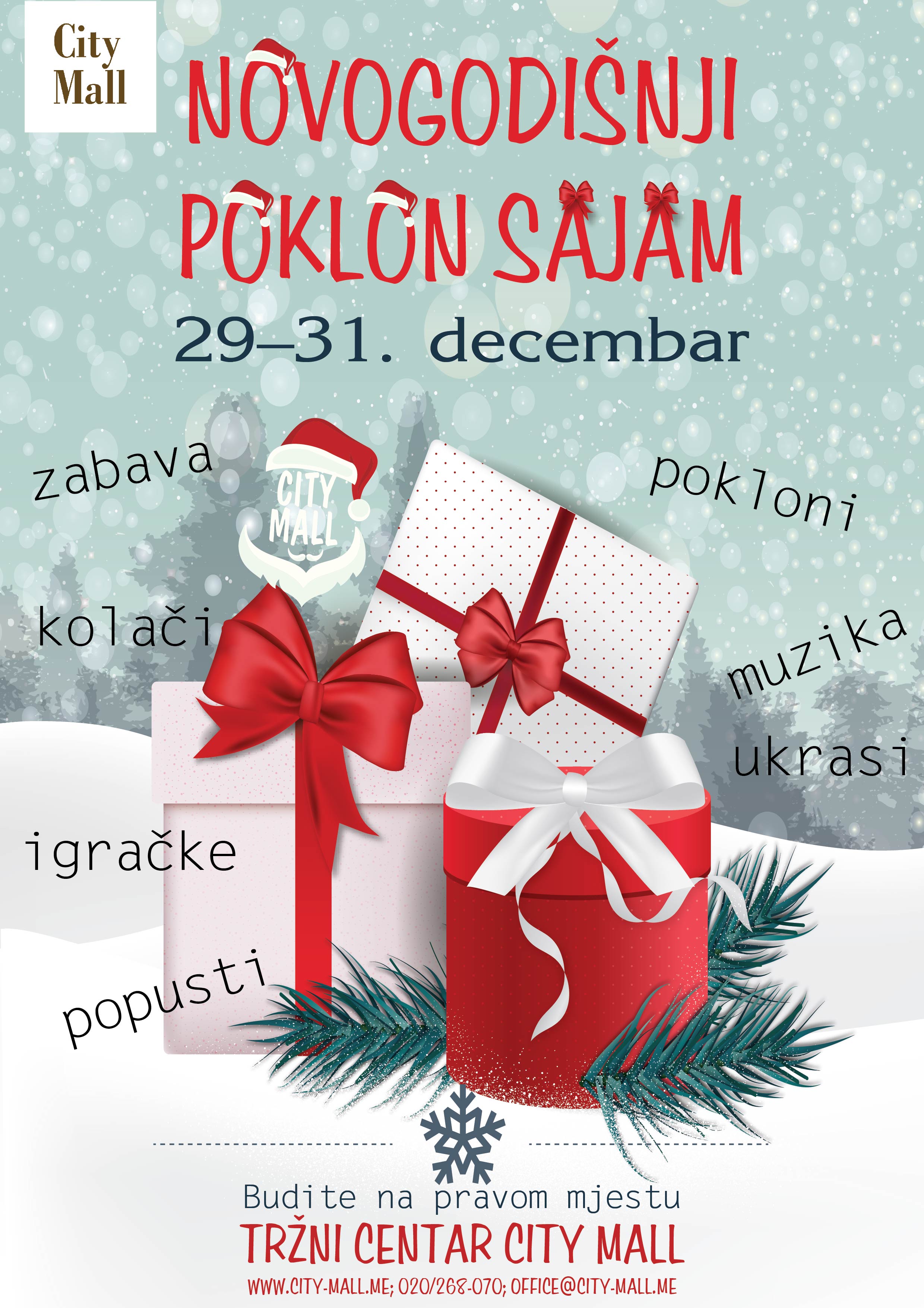 Novi tržni centar „City Mall“, koji se nalazi preko puta City kvarta, u saradnji sa kompanijom Đoković organizuje „Novogodišnji poklon sajam“ od 29. do 31. decembra.
