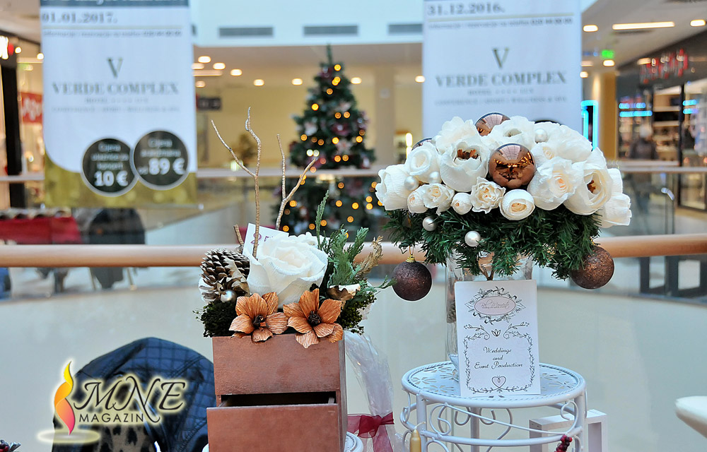 Osim novogodišnjih aranžmana, u City Mall-u su izložili i dio aranžmana koji nisu asocijacija samo na praznike, već i na intimne privatne svečanosti, poput bidermajera , svadbenih i rođendanskih dekoracija.