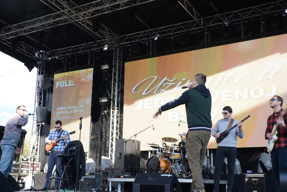 Rep sastav „Mazzom u fugazzu“ otvorio je dnevnim programom treći, ujedno i posljednji, dan novogodišnjeg programa u organizaciji Turističke organizacije opštine Budva, ispred zidina Starog grada.