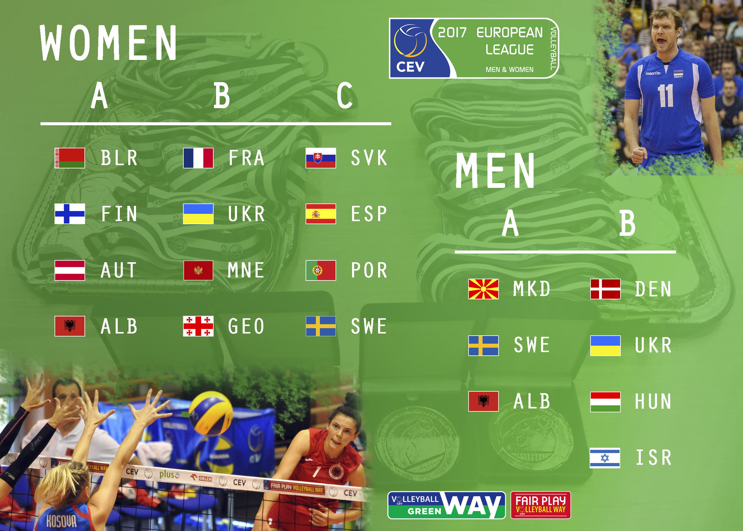 Danas je, u sjedištu CEV u Luksemburgu, održan žrijeb za Evropsku ligu 2017 u muškoj i ženskoj konkurenciji.