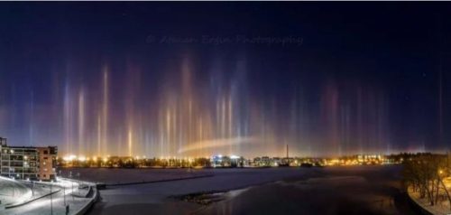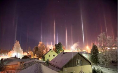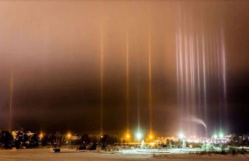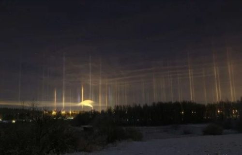 ,,Svjetlosni stubovi” je atmosferski optički fenomen koji se formira nakon interakcije svjetlosti s kristalima leda.