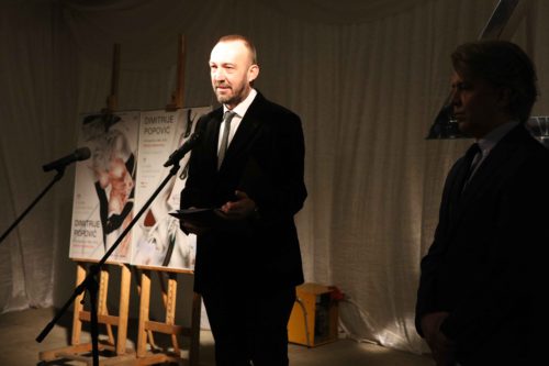 U svom obraćanju ministar Ljumović je naveo: „Djelo Dimitrija Popovića spaja i naše dvije kulture. Ono je dio narativa koji svjedoči prožimanja kultura Crne Gore i Republike Hrvatske, a to je uvijek dodatni razlog zadovoljstva i još jedan poziv za jačanje kulturne saradnje. U procesu stvaralaštva Dmitrija Popovića Grad Zagreb i Prijestonica Cetinje imaju posebno mjesto, kroz uticaje, razvoj i afirmaciju osobene i snažne poetike likovnog izraza. Mjesto Dimitrija Popovića u hrvatskoj i crnogorskoj likovnoj sceni zasluženo je decenijama posvećenog umjetničkog rada, autentičnim autorskim pristupom, velikim brojem izložbi u Hrvatskoj, Crnoj Gori i inostranstvu, i konačno, značajnim umjetničkim opusom, koji i u večerašnjoj postavci iznova iznenađuje i fascinira.“