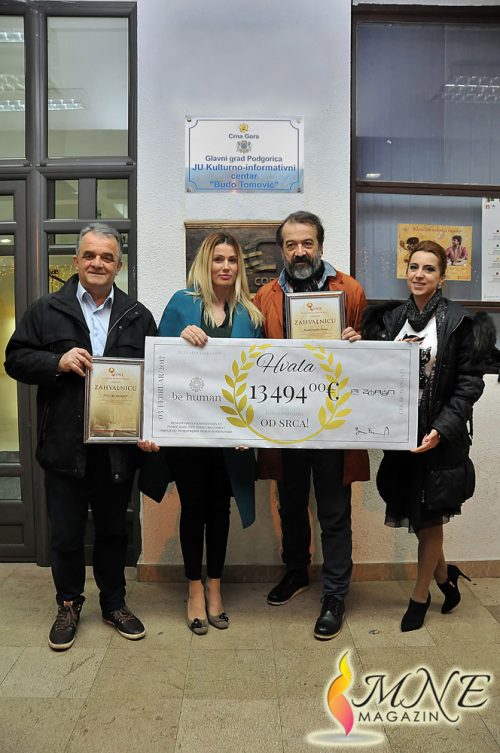 Predstavnici NVU „Budi human“ i Kuće mode i ljepote „Zoran“ uručili su juče gospođi Dijani Stojanović, predsjednici NVO „Fenix“ ček od 13.494,00 eura što je konačni iznos sakupljen u okviru humanitarnog projekta BE HUMAN HAIR SHOW.