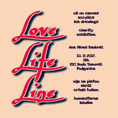 Humanitarna izložba slika pod nazivom ,,Love Life Line” autorke Ane Nives Radović biće organizovana u petak, 10. februara, u izložbenom holu KIC-a ,,Budo Tomović”, od 18 do 21 sat.