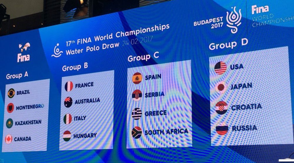 Vaterpolisti Crne Gore na Svjetskom prvenstvu u Budimpešti koje je na program od 17. do 29. jula 2017. godine igraće u grupi A sa selekcijama Brazila, Kazahstana i Kanade.