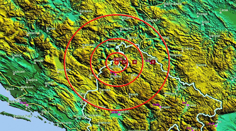 Epicentar zemljotresa je registrovan 11 km sjeveroistočno od HE PIVA (Crna Gora).