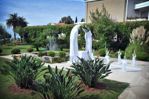 Francuska terasa, u atraktivnom vrtu hotela, okružena mediteranskim zelenilom, pružiće vam nezaboravne romantične trenutke. Pogodna je za organIzaciju manjih vjenčanja, kapaciteta do 120 mjesta.