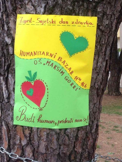 U podgoričkoj Osnovnoj školi ,,Maksim Gorki” danas je povodom Svjetskog dana zdravlja održan humanitarni bazar pod nazivom ,,Budi human, pridruži nam se!”.