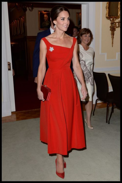 Tokom posjete Kanadi 2016. godine Kejt je zablistala u crvenoj midi haljini i podsjetila nas je na Odri Hepburn iz filma Funny Face iz 1957. godine. Lijepa vojvotkinja je ponijela kreaciju britanskog brenda Preen i sa neodoljivim osmjehom opet zavela sve.