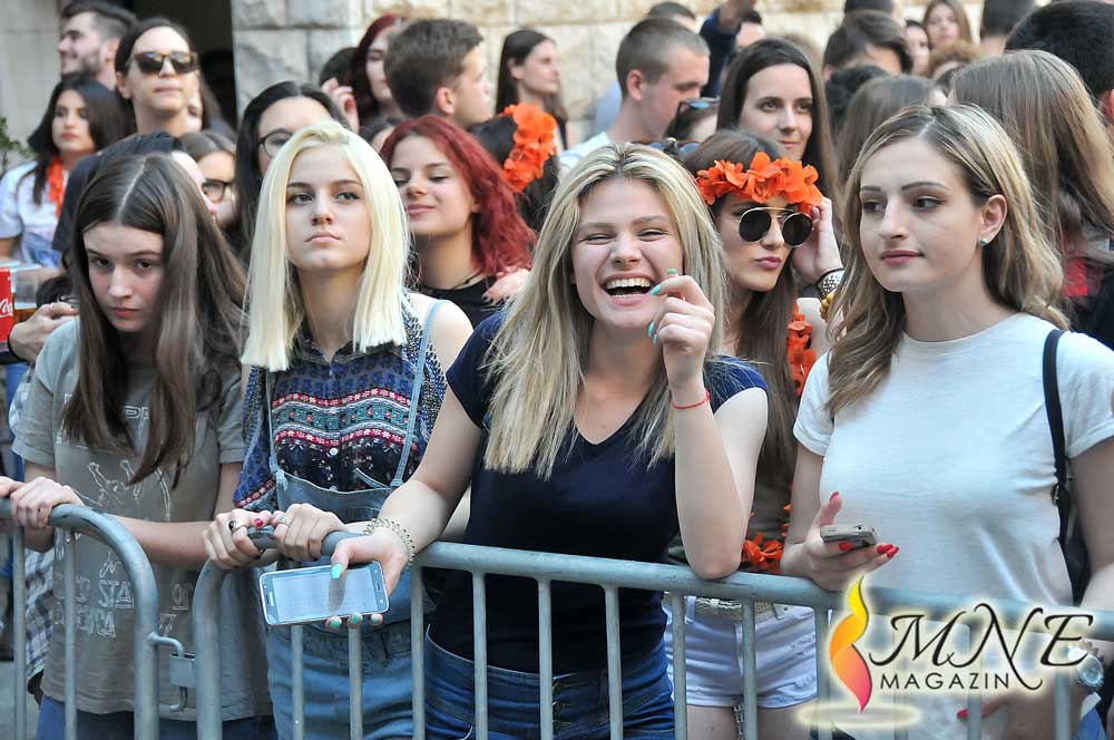 Pjesmu ,,Mama“ posvetio je majkama i nesvršenim studentkinjama, uz poruku: ,,Djevojke, ovo vas čeka.“ Usred numere iznenadio je publiku dobro poznatim refrenom pjesme ,,Zastave“ crnogorske grupe ,,Perper“.