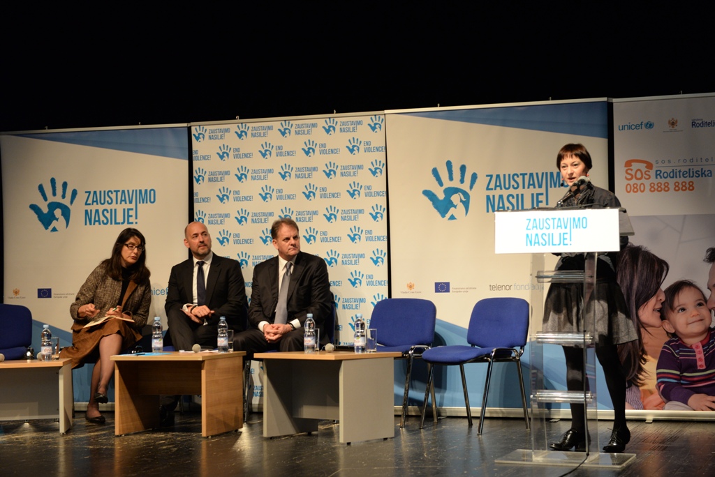U okviru kampanje UNICEF-a i Vlade Crne Gore „Zaustavimo nasilje“, uz podršku EU i Telenor fondacije organizovan je javni razgovor na temu odnosa roditelja i djece u Podgorici. Podgorica je postala 14. opština koja se pridružila kampanji „Zaustavimo nasilje“ i omogućila građanima da sa gradonačelnikom Slavoljubom Stijepovićem, šefom predstavništva UNICEF-a u Crnoj Gori Bendžaminom Perksom, te Tamarom Milić, iz Udruženja psihologa, te i izvršnom direktoricom NVO ,,Roditelji” Kristinom Mihailović razgovaraju o odnosima u porodici i dobrim praksama roditeljstva. Kampanji su se do sada u drugim opštinama pridružile mnogobrojne poznate ličnosti, a u Podgorici se na javnom razgovoru u ulozi prijatelja kampanje pojavila poznata glumica Dubravka Drakić.