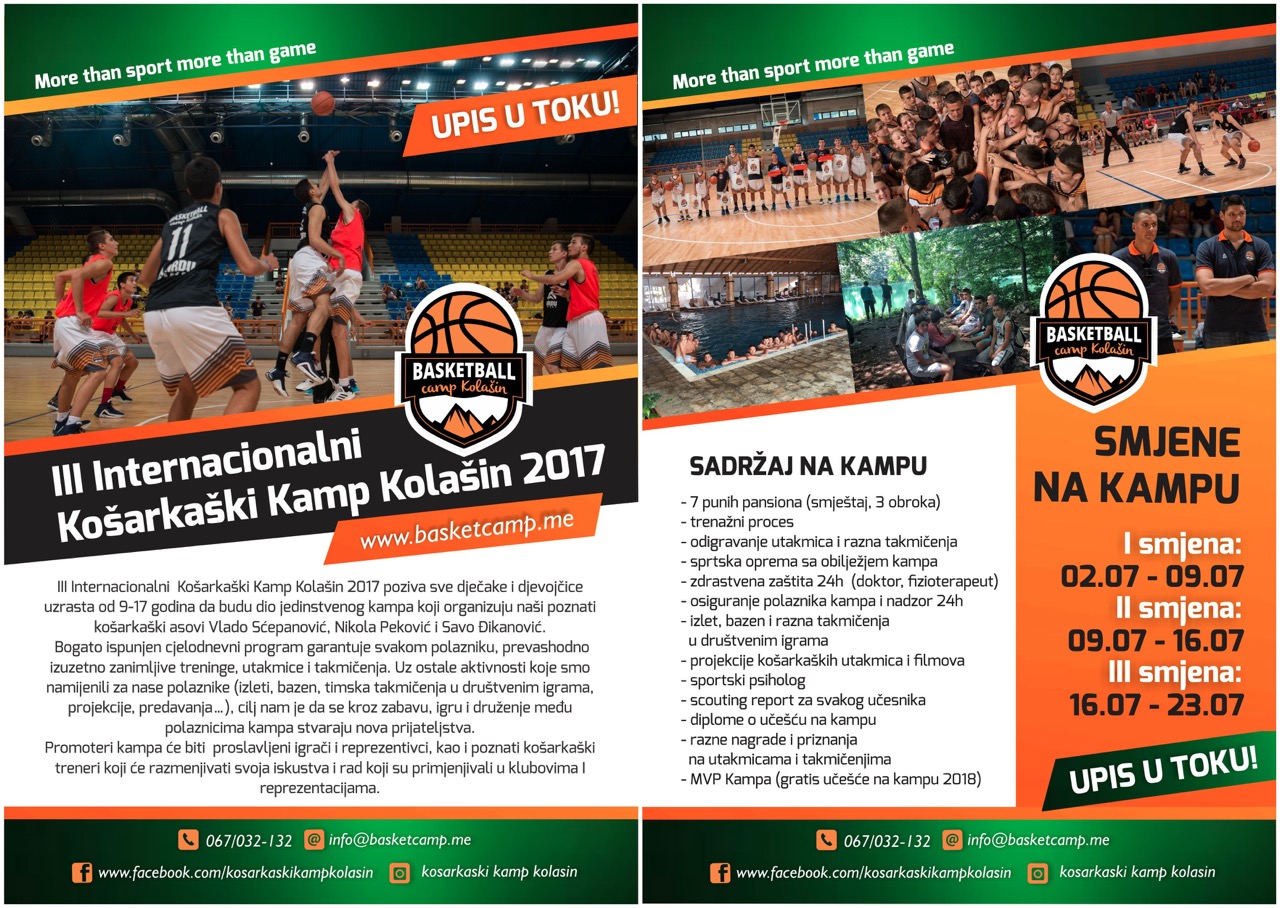 Košarkaški kamp Kolašin 2017 biće organizovan treći put zaredom u Crnoj Gori. Nakon uspjeha koji je ostvaren u prethodne dvije sezone organizatori najavljuju još veće interesovanje djece i bolju posjetu na ovogodišnjem kampu.