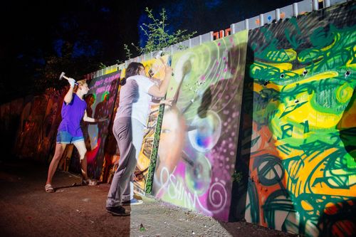 Na ,,Džada Film Festu” sinoć je publika imala priliku da pogleda njemački film ,,Životi drugih” koji je dobitnik Oskara za strani film. Prije prikazivanja filma simbolično je srušen Berlinski zid na kojem su radili grafite već afirmisani i mladi artisti.