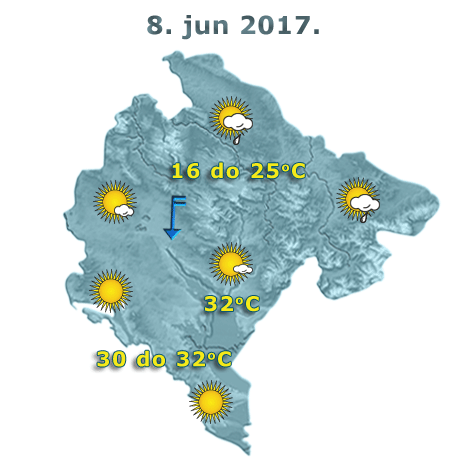 Jutarnja temperatura od devet do 23, najviša dnevna od 16 do 32 stepena.