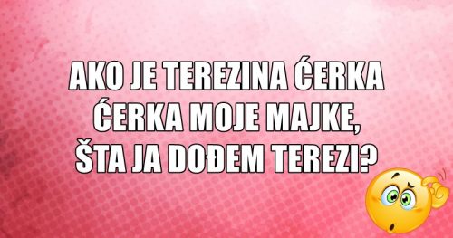 Odgovor leži u triku da se zapitate ko postavlja pitanje. Dakle, Terezina ćerka je ćerka moje majke. Ako tako gledamo, majka moje ćerke sam, logično, ja (dakle, našli smo ko postavlja pitanje). Kada to znamo, sledi da sam Terezina ćerka ja, a ja postavljam i pitanje, pa iz toga slijedi i odgovor.