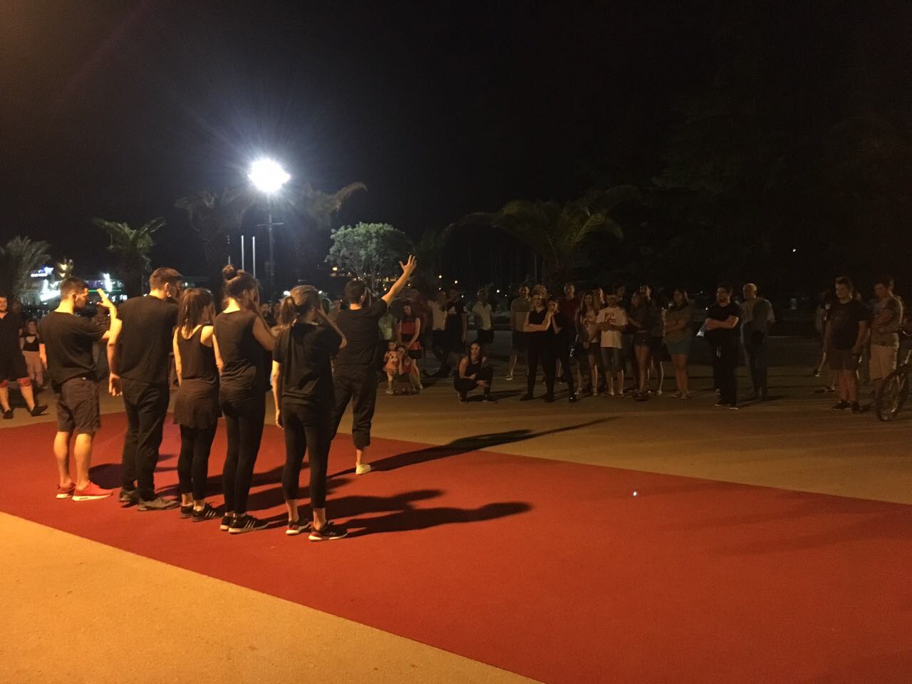 Prateći program protekao je sinoć u znaku uličnog teatra. Studenti treće i četvrte godine Fakulteta dramskih umjetnosti, predvođeni rediteljskom palicom profesora Ferida Karajice, prvo su u lokalu Gvardia u performansu pod maskama, prolaznike zaintrigirali kazivanjem crnogorske poezije, a potom su na šetalištu uz marinu Bar izveli jednosatni performans na temu: kroki karaktera ljudi sa putovanja. Okruženi velikim brojem Barana i turista, zasuti blicevima njegovih aparata, praćeni čestim aplauzima i stalnim smijehom, studenti su svojom izvedbom putovali širom svijeta i prikazivali tipizirane karaktere ljudi koje vezujemo za različite zemlje.
