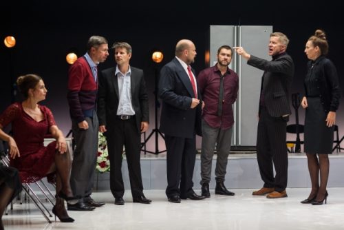 Prevod teksta uradila je Aleksandra Rekar, dramaturškinja je Katarina Pejović, scenograf Branko Hojnik, kostimografkinja Jelena Proković, kompozitor Drago Ivanuša, a lektor Jože Volk.Uloge tumače: Peter Musevski, Aljoša Koltak, Borut Veselko, Andrej Murenc, Aljoša Ternovšek, Branko Završan, Darja Reichman, Lučka Počkaj, Barbara Ribnikar odnosno Pia Zemljič kao alternacija, Barbara Medvešček i Liza Marija Grašič.