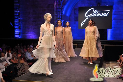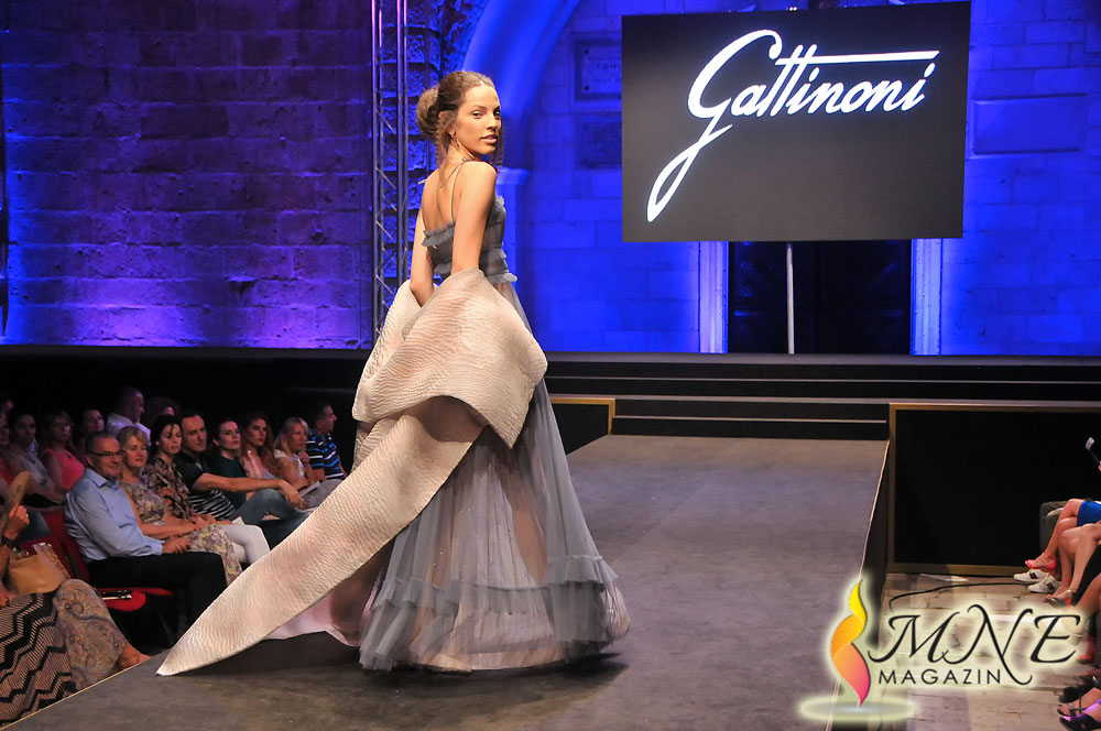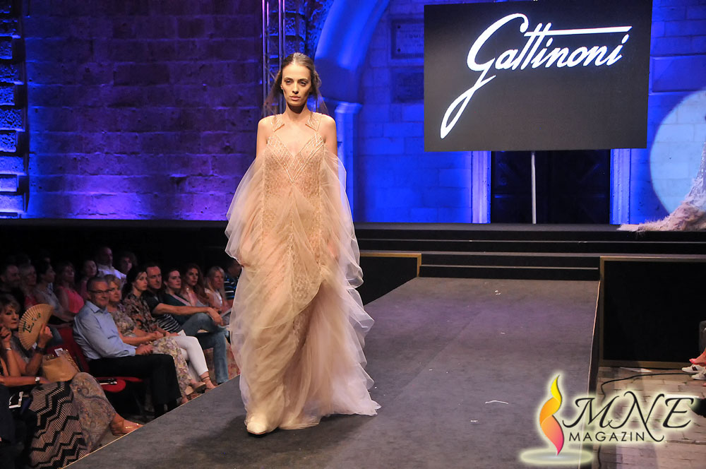 Modna kuća ,,Gattinoni”, prije samog predstavljanja kolekcije, putem video-bima odvela je posjetioce u fabriku u Italiji i pokazala kako se to izrađuju ove vrsne kreacije. A onda su na scenu stupile pet manekenki, izlazeći jedna po jedna u bajkovitim kreacijama, uz instrumental ,,Hijo de la luna” koji je nadopunio cijelu čaroliju. Ono što je dodatno dalo pečat kolekciji jesu ogrlice, narukvice i prstenje u obliku leptira.