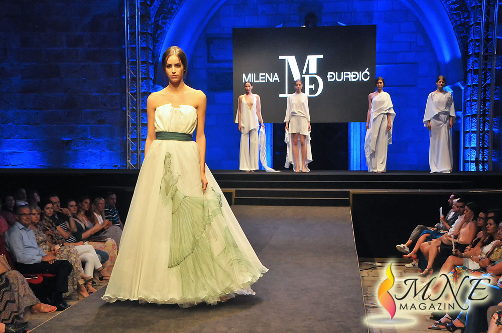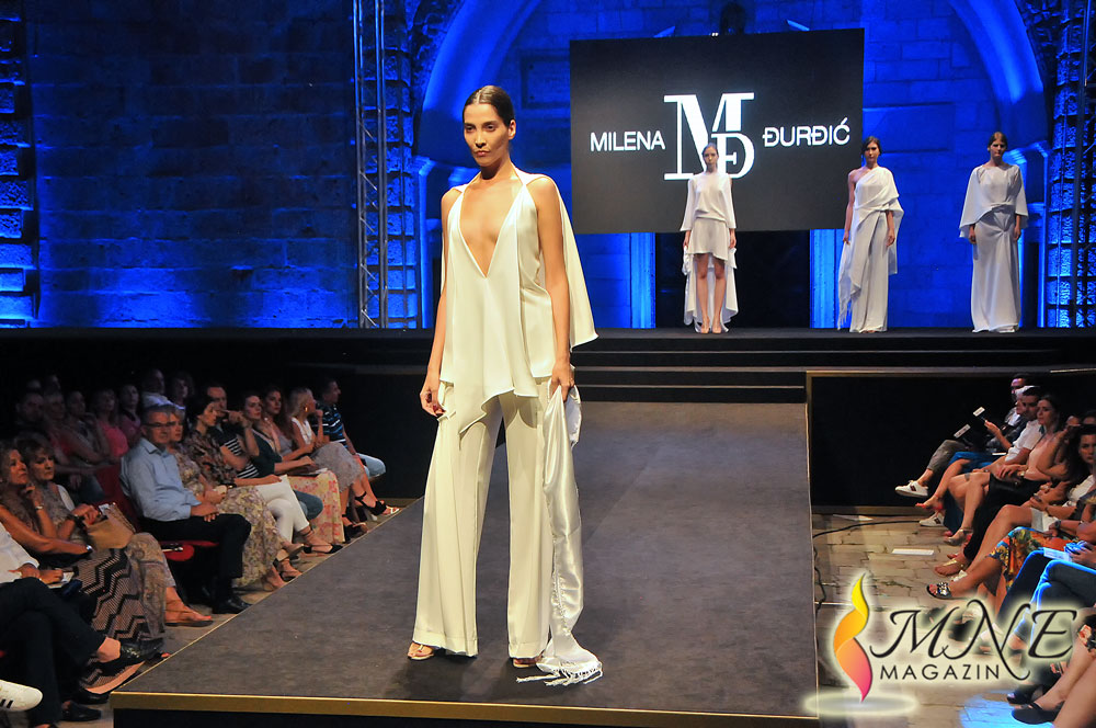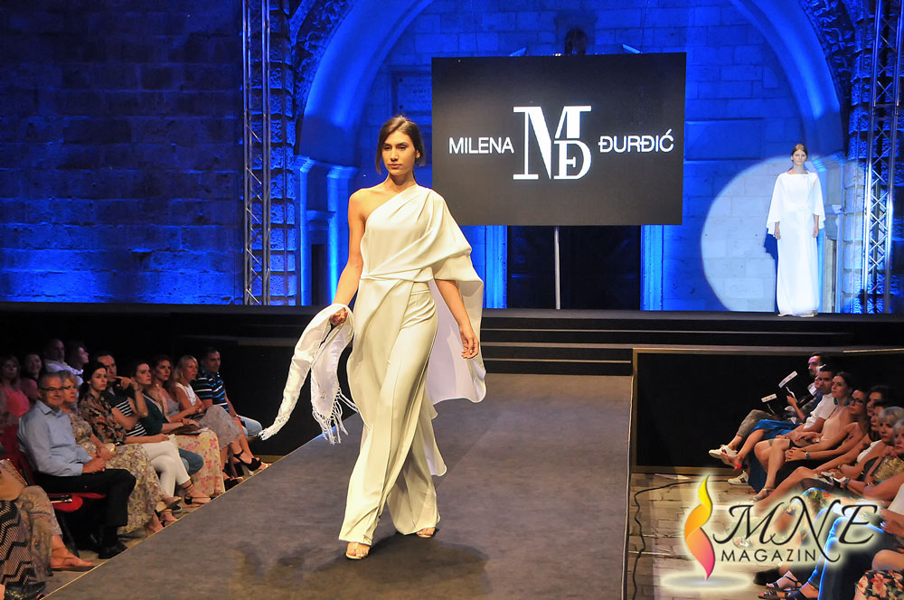 Prva je svoje kreacije u prelijepom ambijentu ispred katedrale sv. Tripuna predstavila Milena Đurđić. Bili su to kombinezon, plašt, haljine, od kojih je posljednjom oduševila publiku. Manekenke su, uz njene modele, u ruci nosile šal na kojem se vidjela ljepota dobrotske čipke.