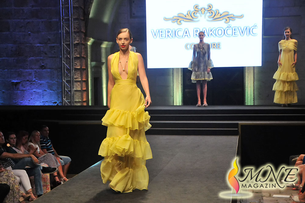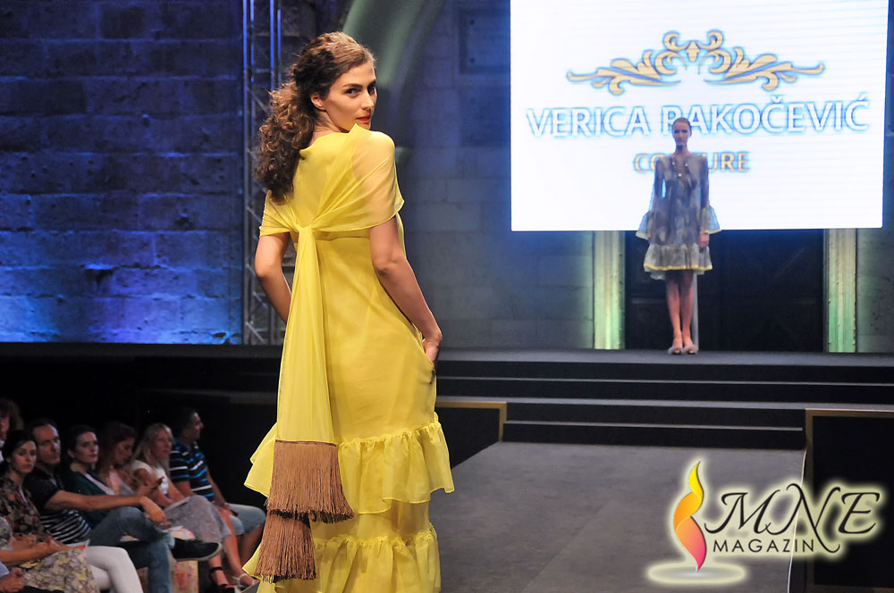 Verica Rakoćević odlučila se za lepršavost, karnere i većinom žutu boju u predstavljanju svojih pet kreacija. Iskoristila je i hit sezone, cipele s krznom, koje su dopunjavale modele. Reviju je iz prvog reda pratio njen suprug Veljko Kuzmančević.